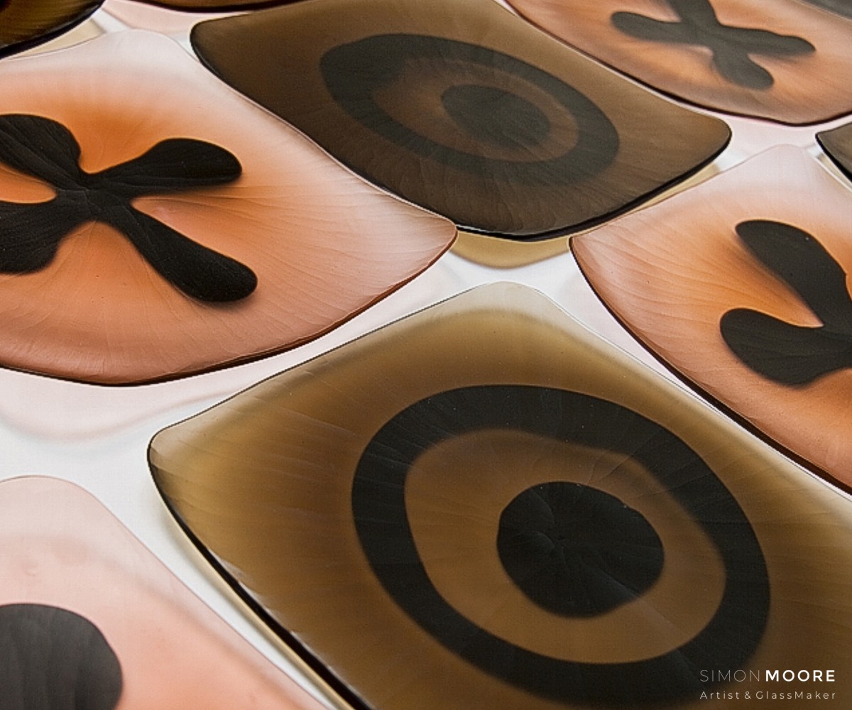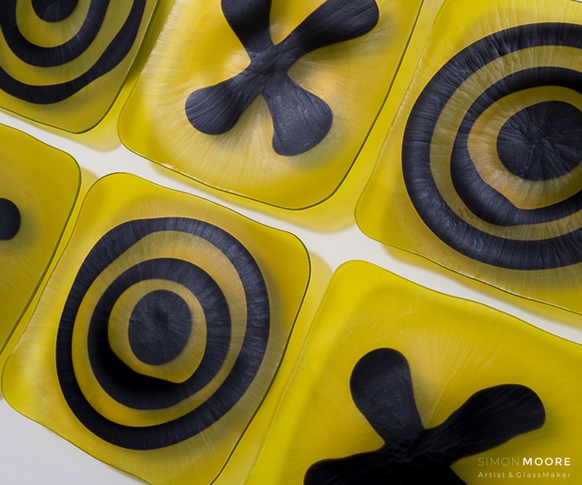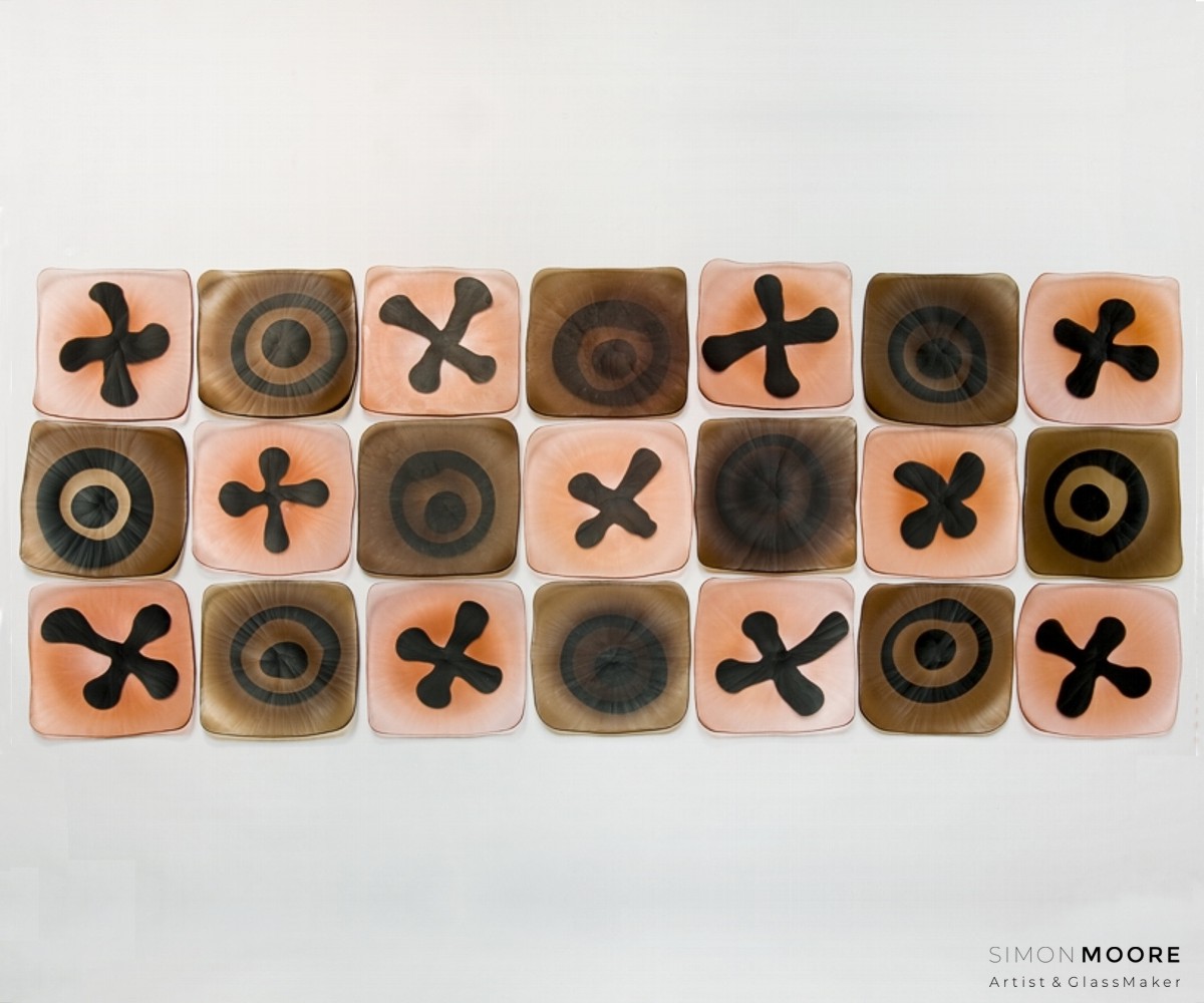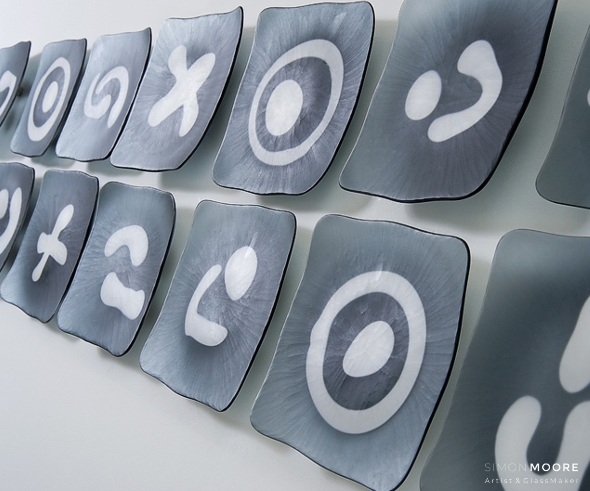 Wall Plates This series of work, with plates fixed to a vertical surface, searches for a wider means of expression than the individual object itself. Leading to investigation of the attributes of multiples and loose repetition of marks and form. Copyright © Simon Moore 2025